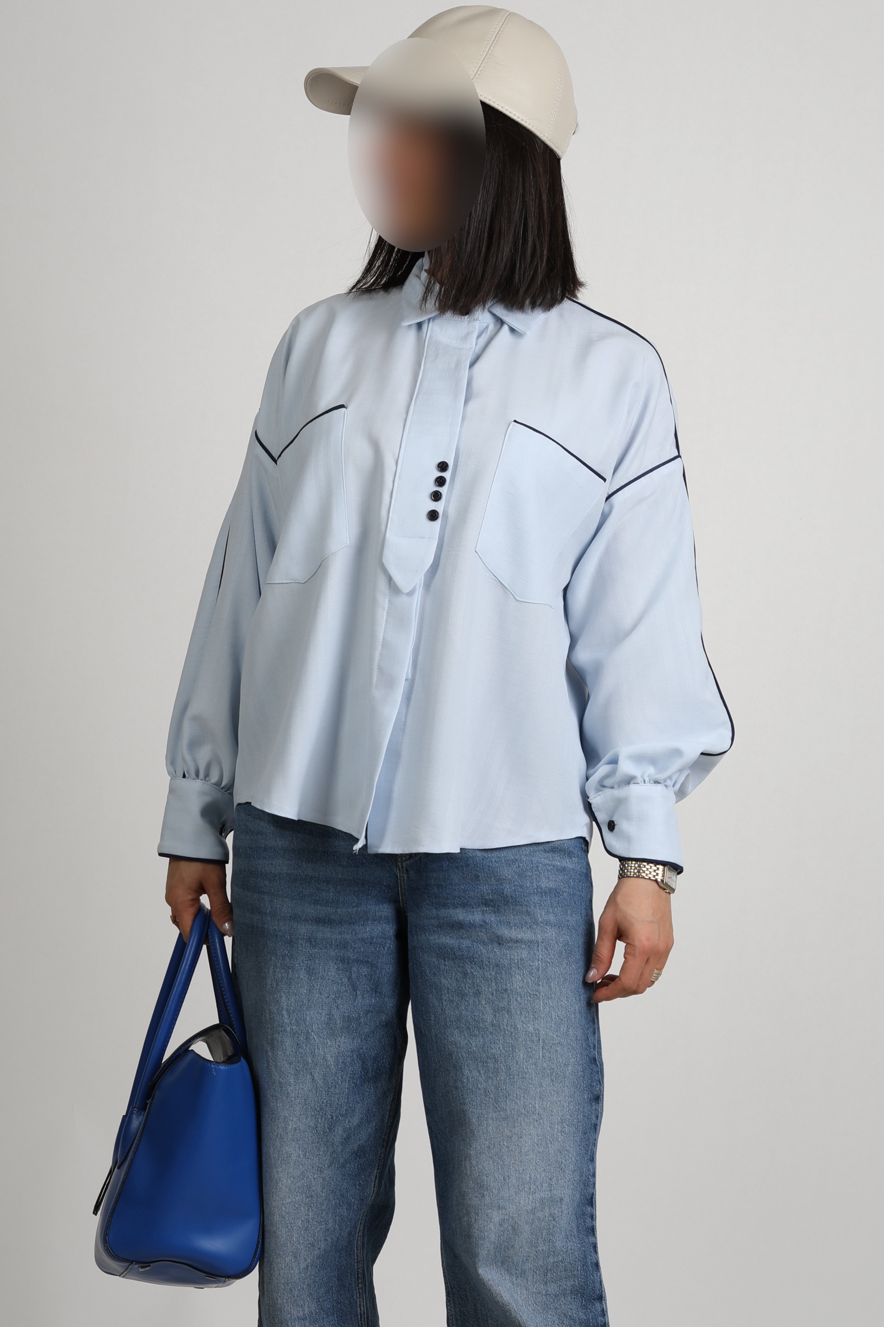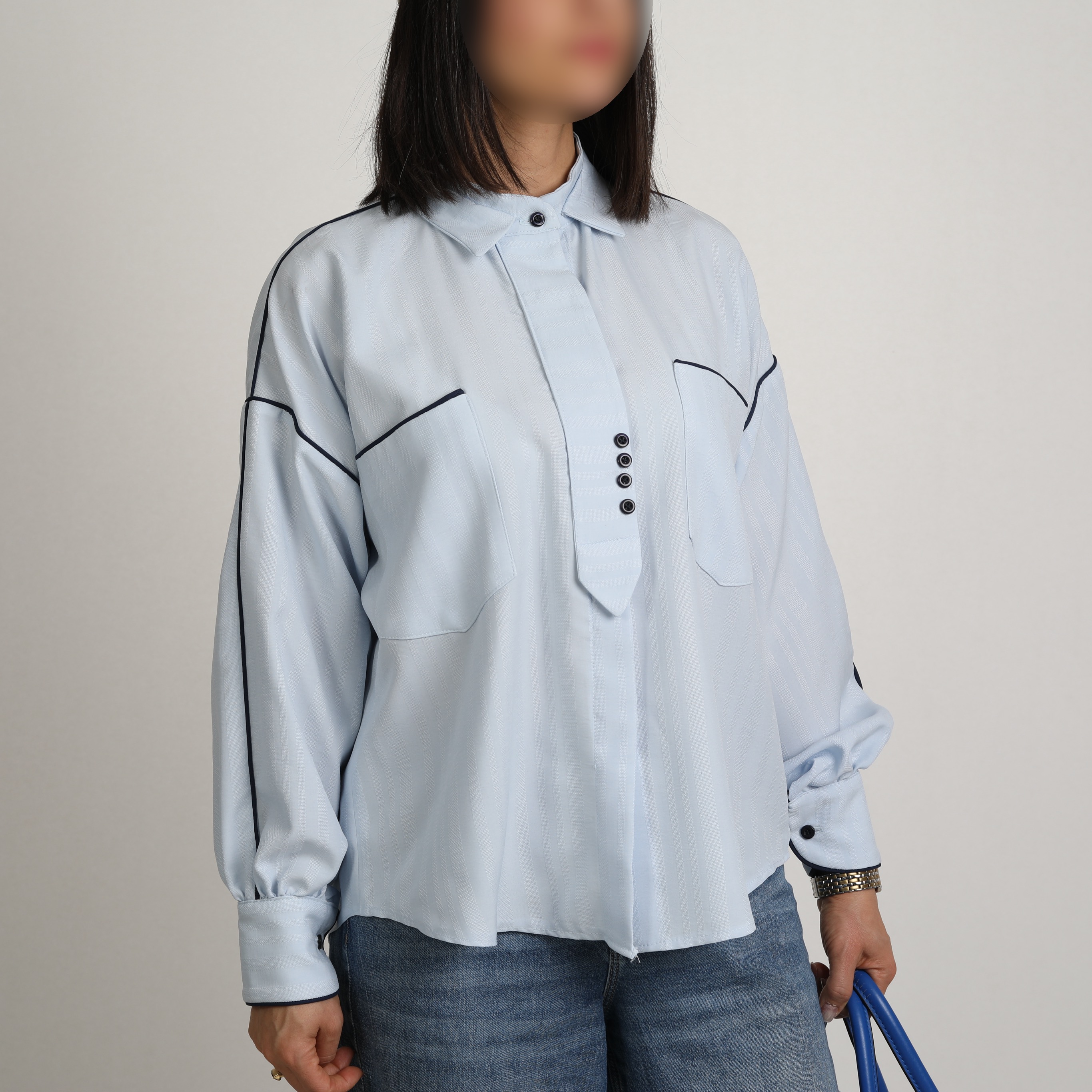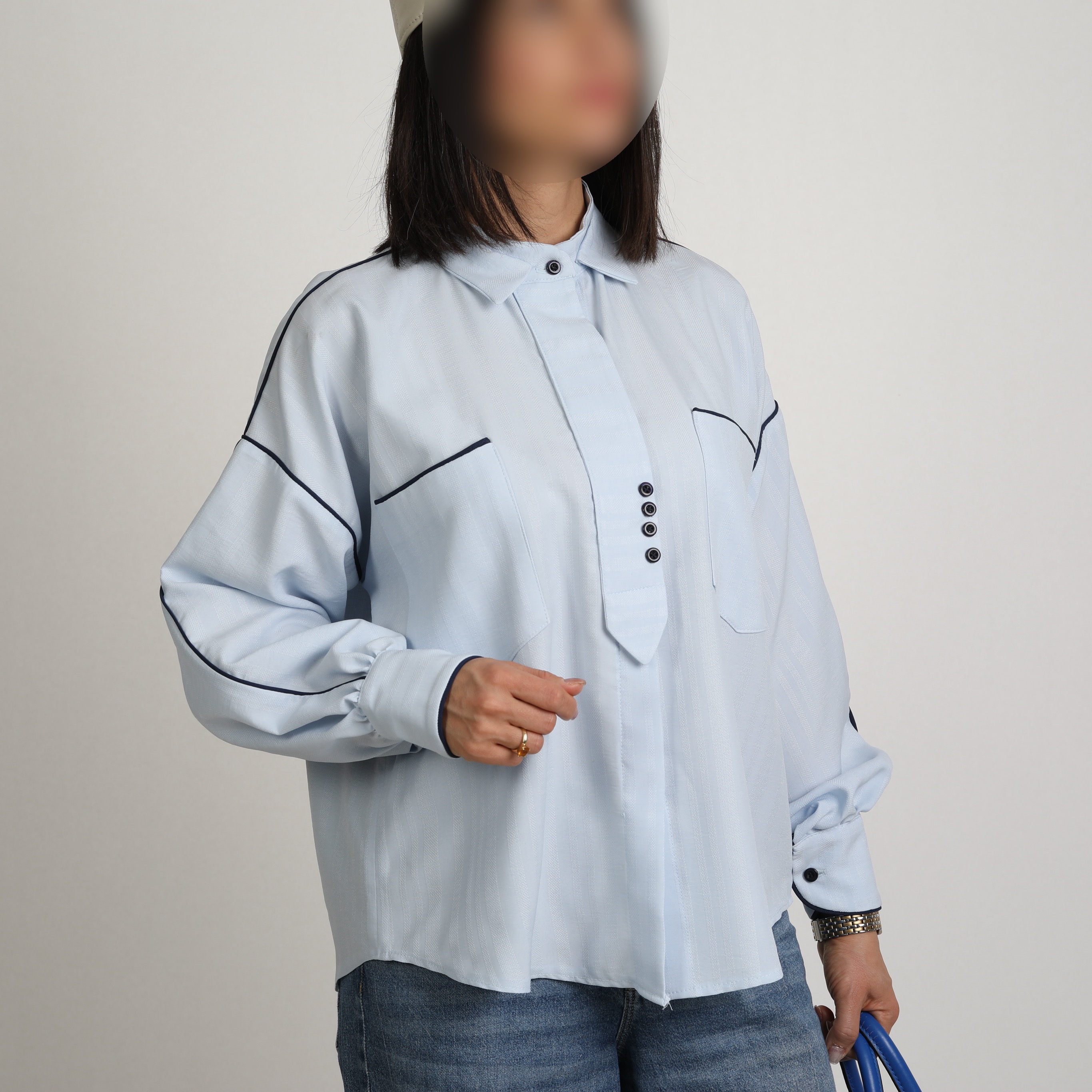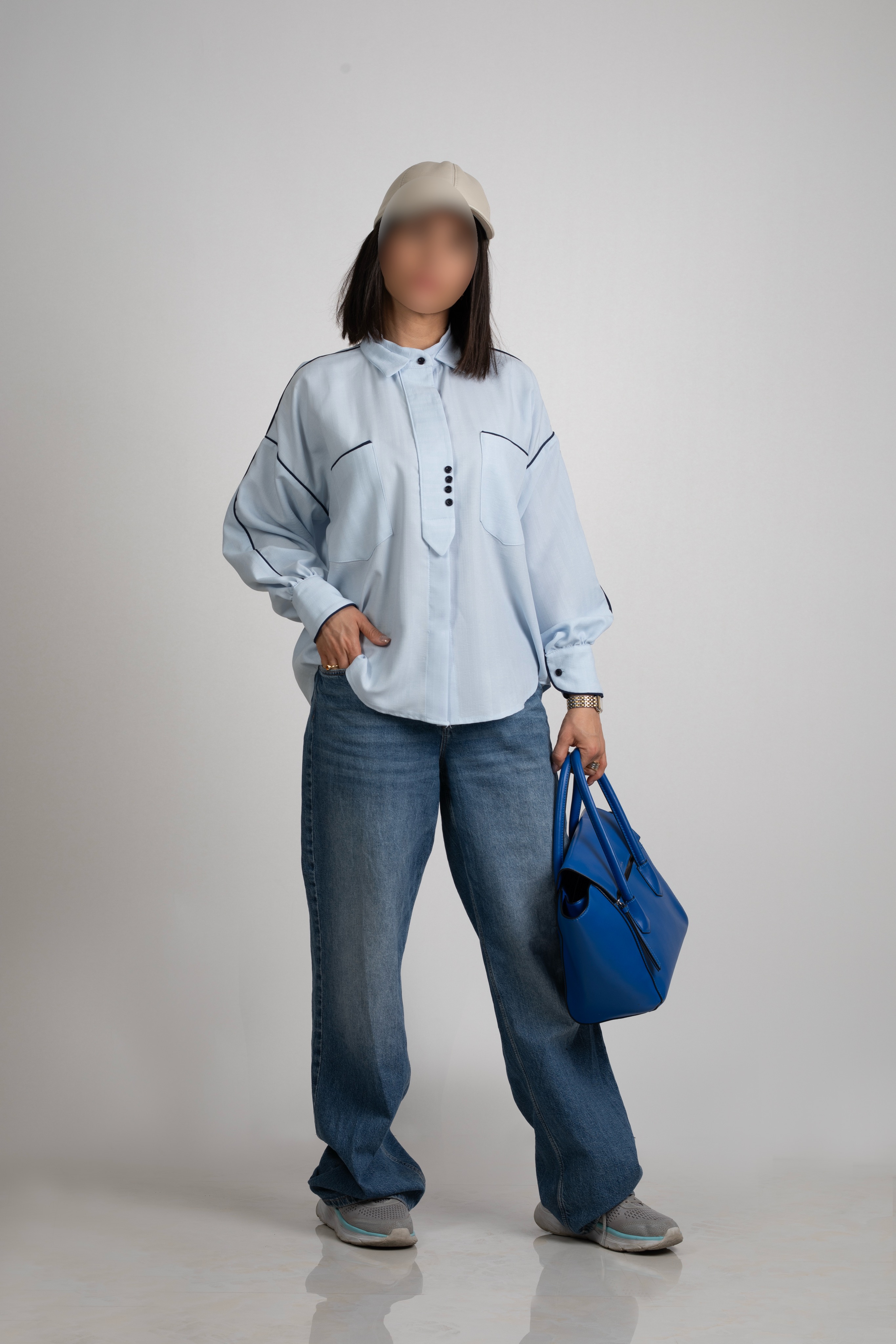 طراحی جیبهای کاربردی روی شومیز، هم ظاهرش رو مدرن کرده و هم استفادهش رو راحتتر.