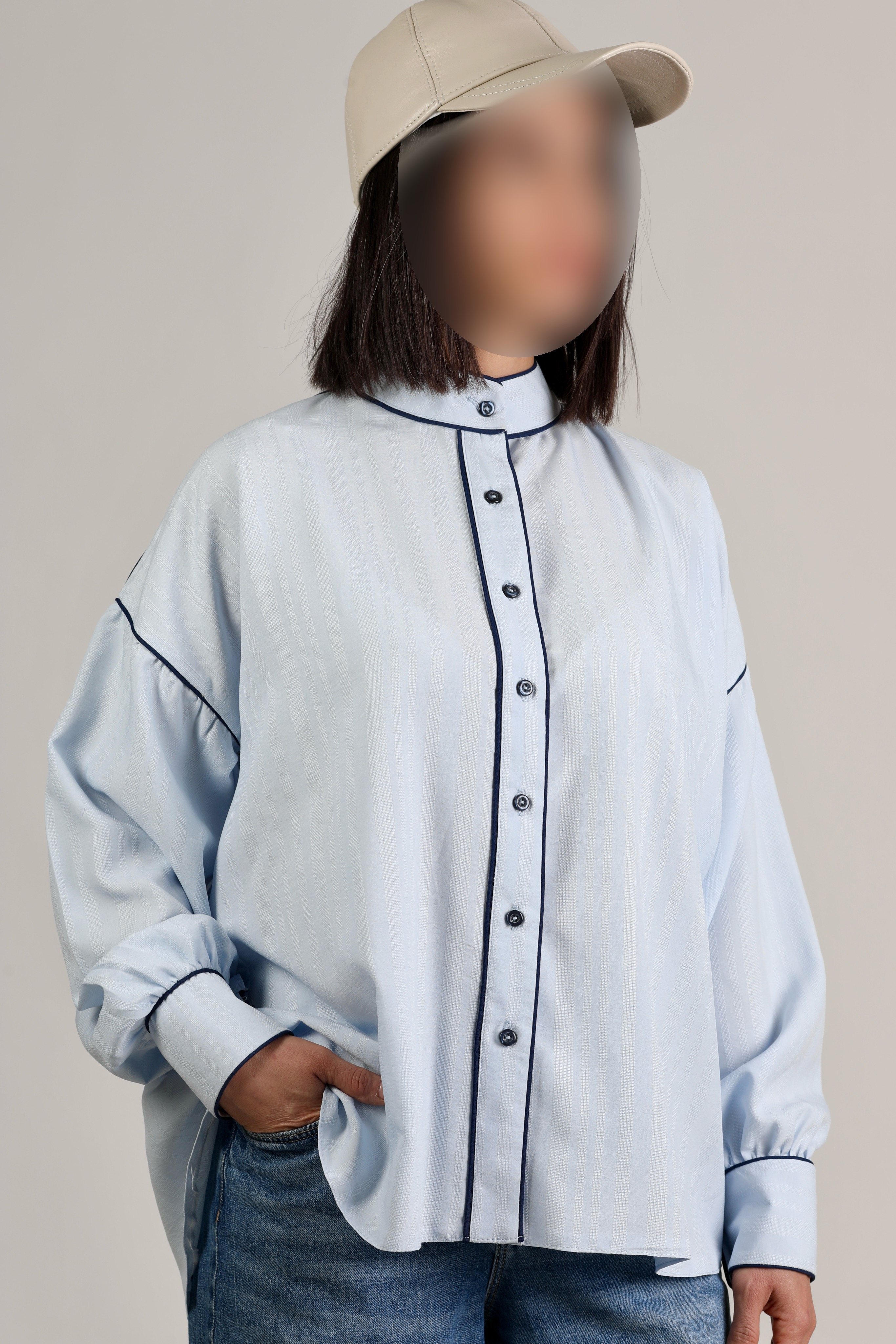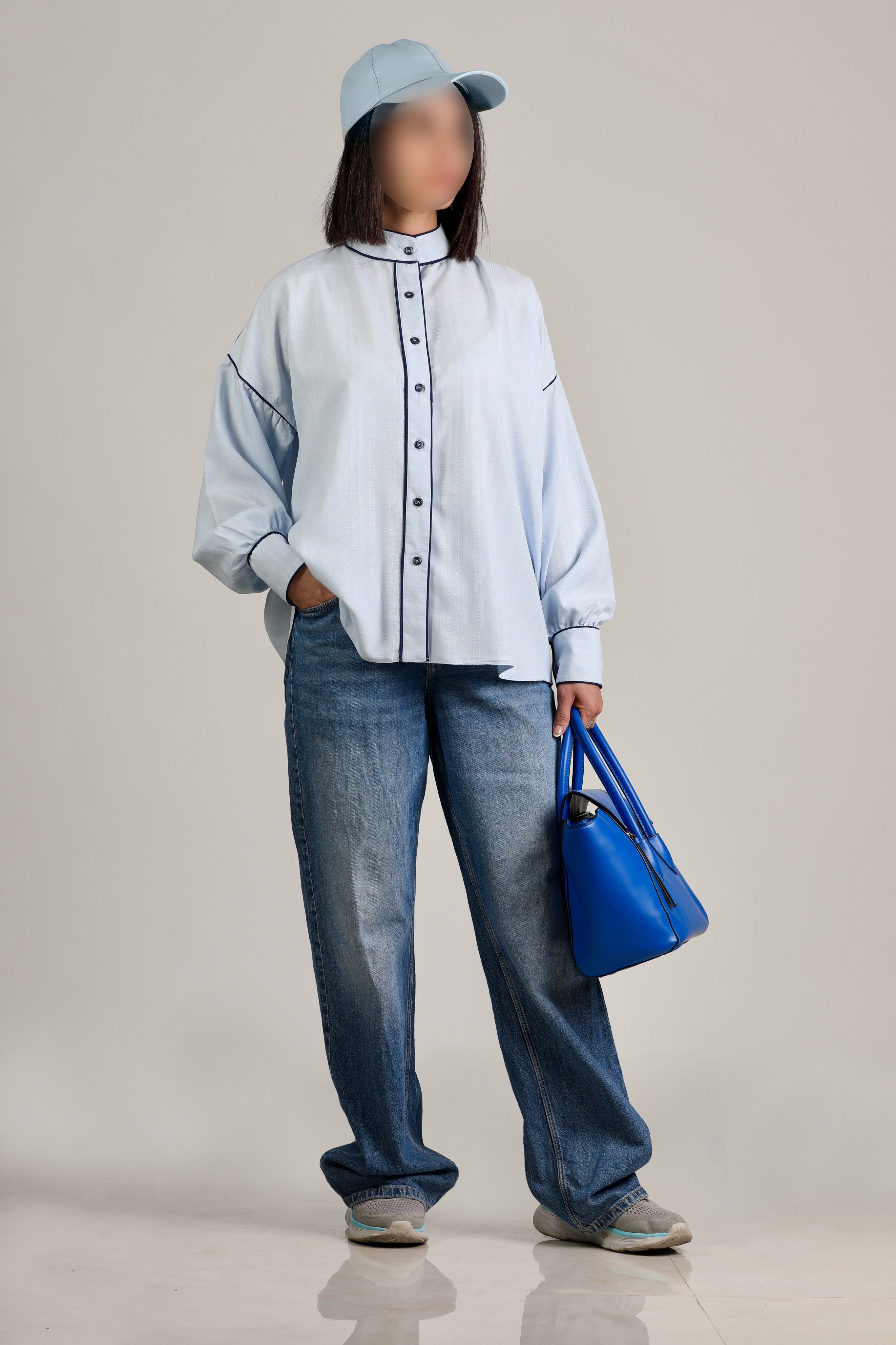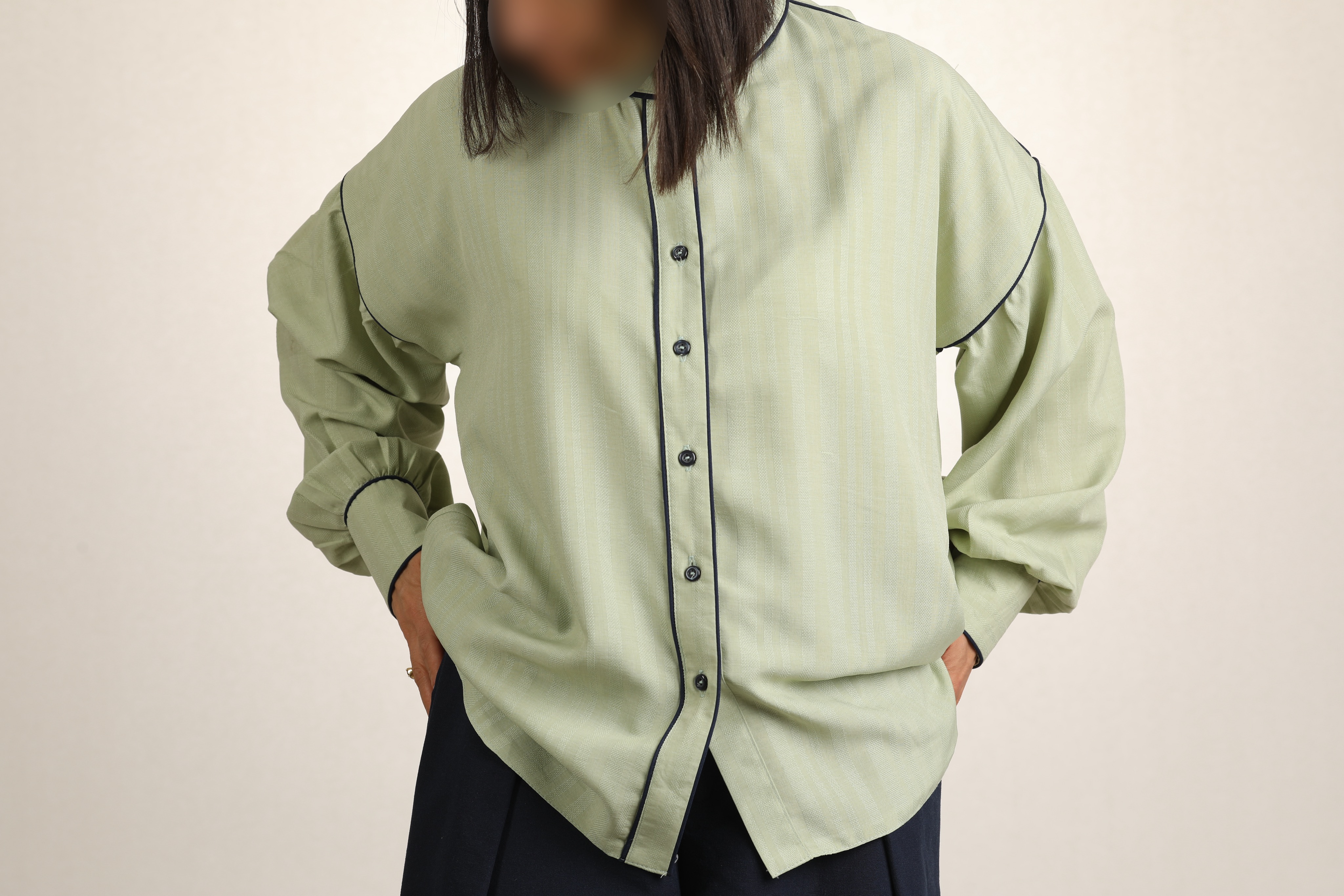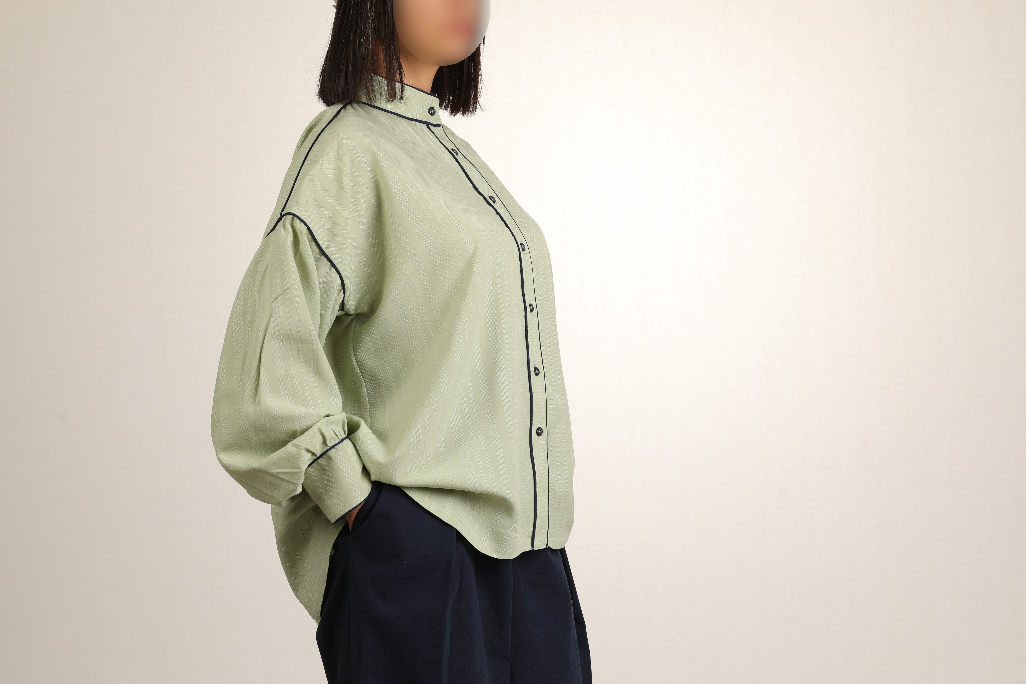کانتراست رنگی دکمه ها و مغذی ها روی شومیز، هم ظاهرش رو مدرن و جذابتر کرده.
